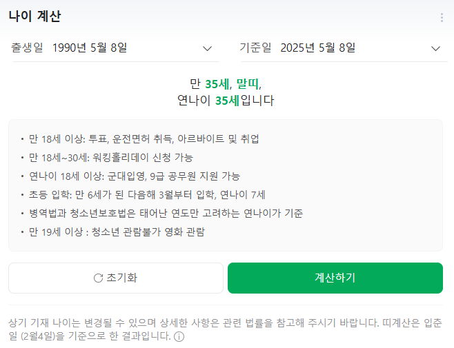 생년월일만 입력하면 자동으로 정확한 만나이를 알려주니까 편하죠!