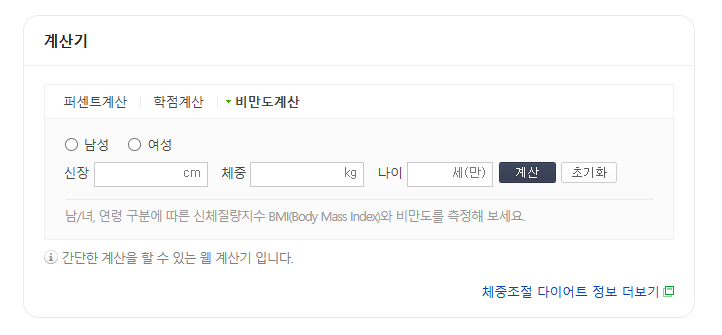 🖥️ 네이버/다음 비만도 계산기