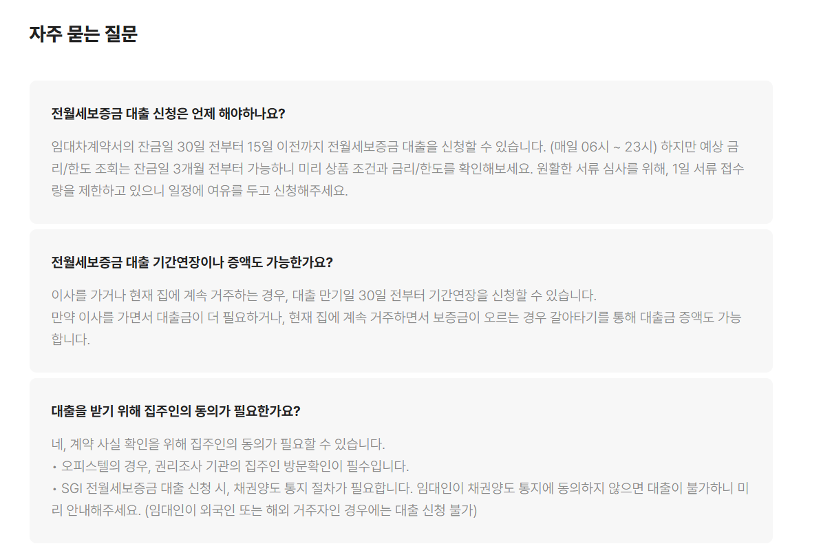 - 월세대출: 보증금과 월세 각각 최대 지원 (보증금은 최대 5천만 원, 월세는 월 30만 원까지)